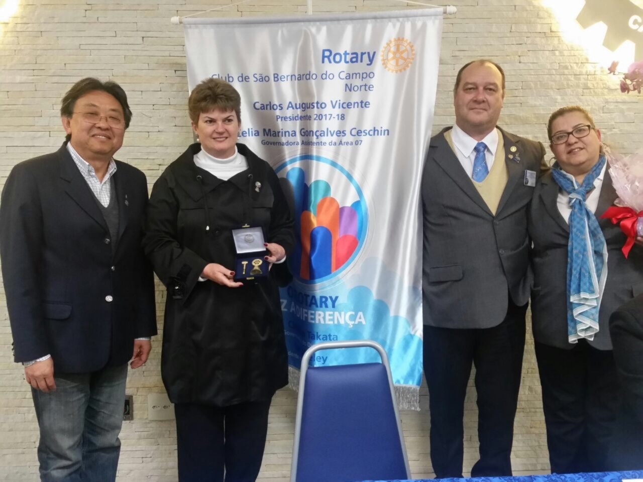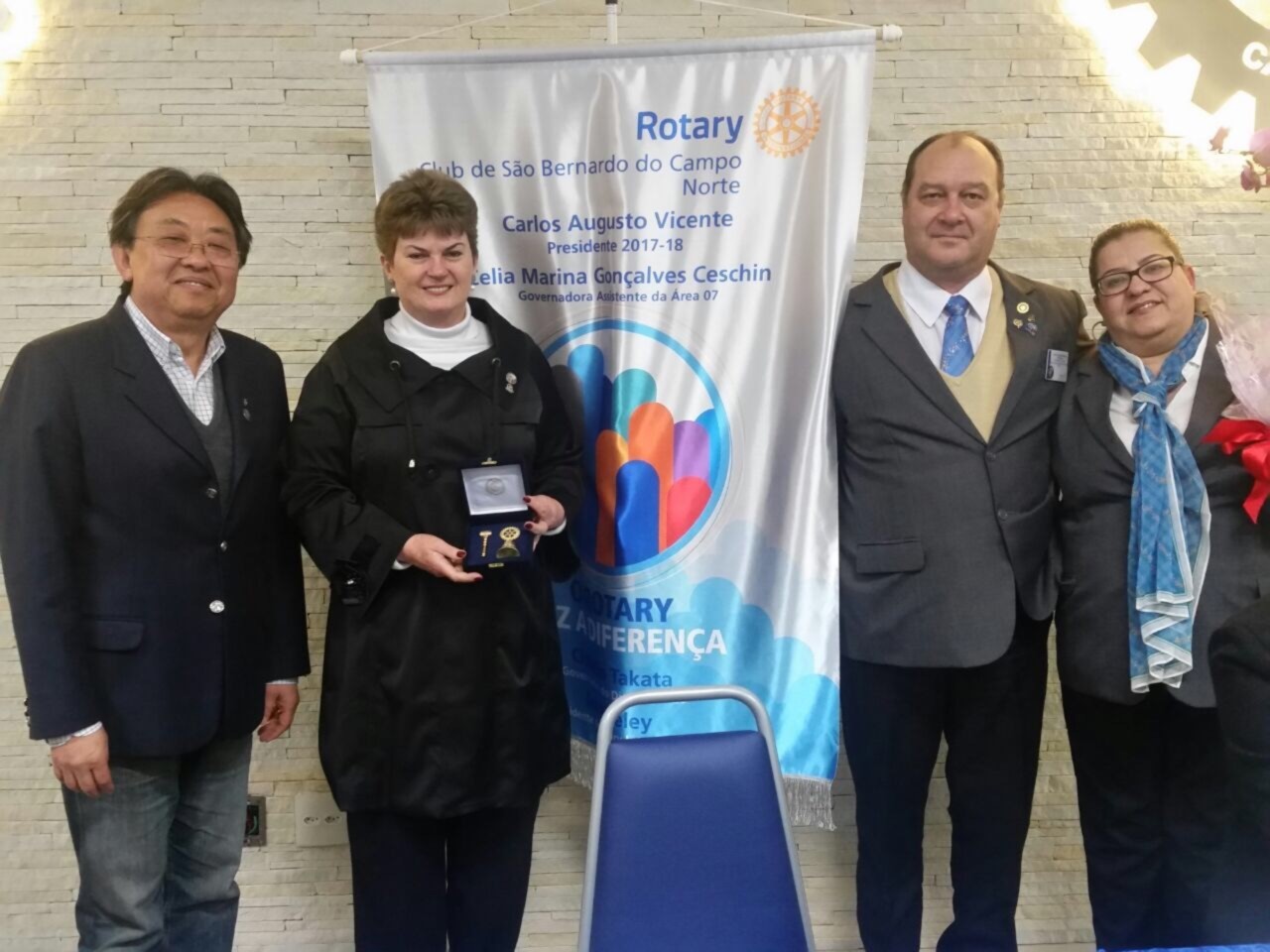 A Governadora Assistente 17-18 Célia Ceschin prestigiou a festiva, juntamente com os presidentes do RC SBC João Luiz Mencarelli e do RC SBC Terra Nova Milton Augusto Galvão Zen.