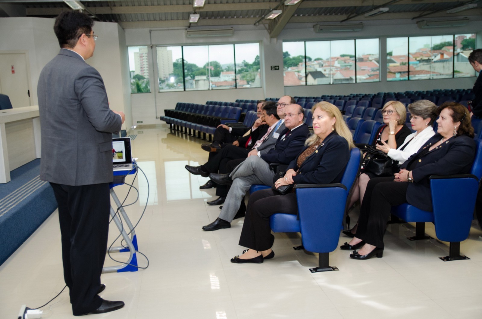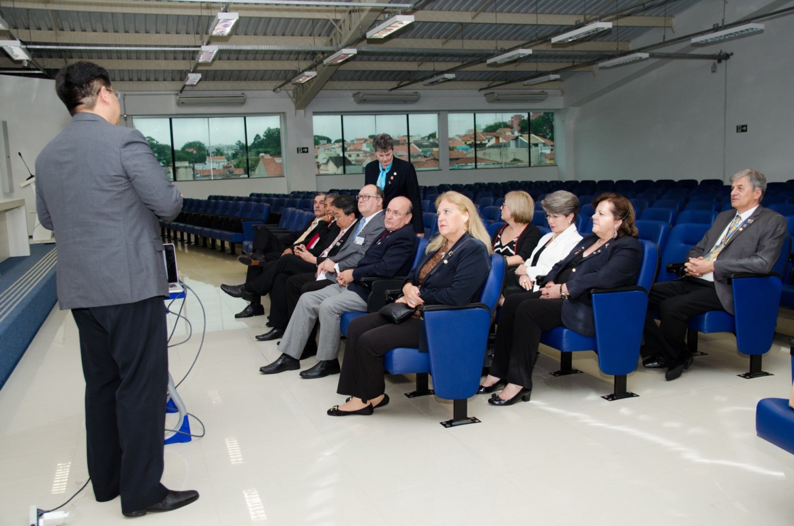 Em seguida, a equipe distrital retornou ao CAMP SBC, onde foi realizada uma breve reunião entre o governador e o presidente do clube, enquanto, Célia Ceschin, governadora assistente, reunia-se com membros da secretaria e tesouraria.