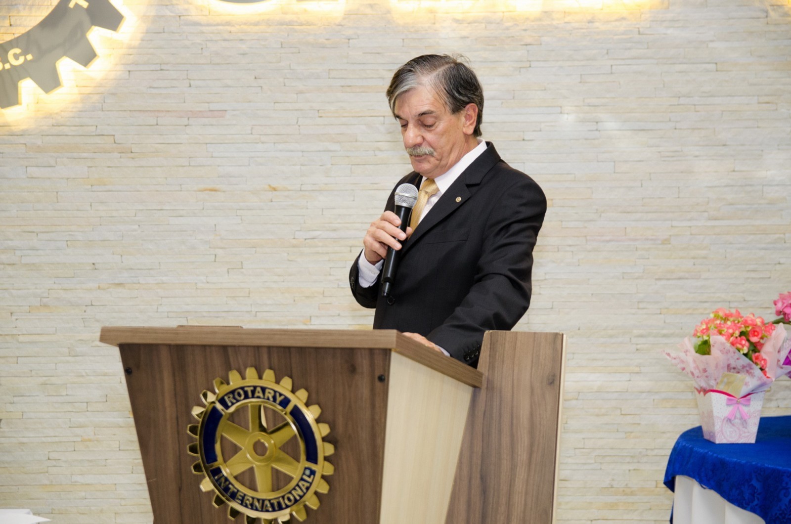 Carlos Augusto fez um breve discurso e agradeceu à presença de todos, afirmou sobre a tarde agradável que passou ao lado do casal governador, falou sobre suas metas, projetos permanentes do clube e pediu aos associados que continuem a colaborar com este novo Conselho Diretor.