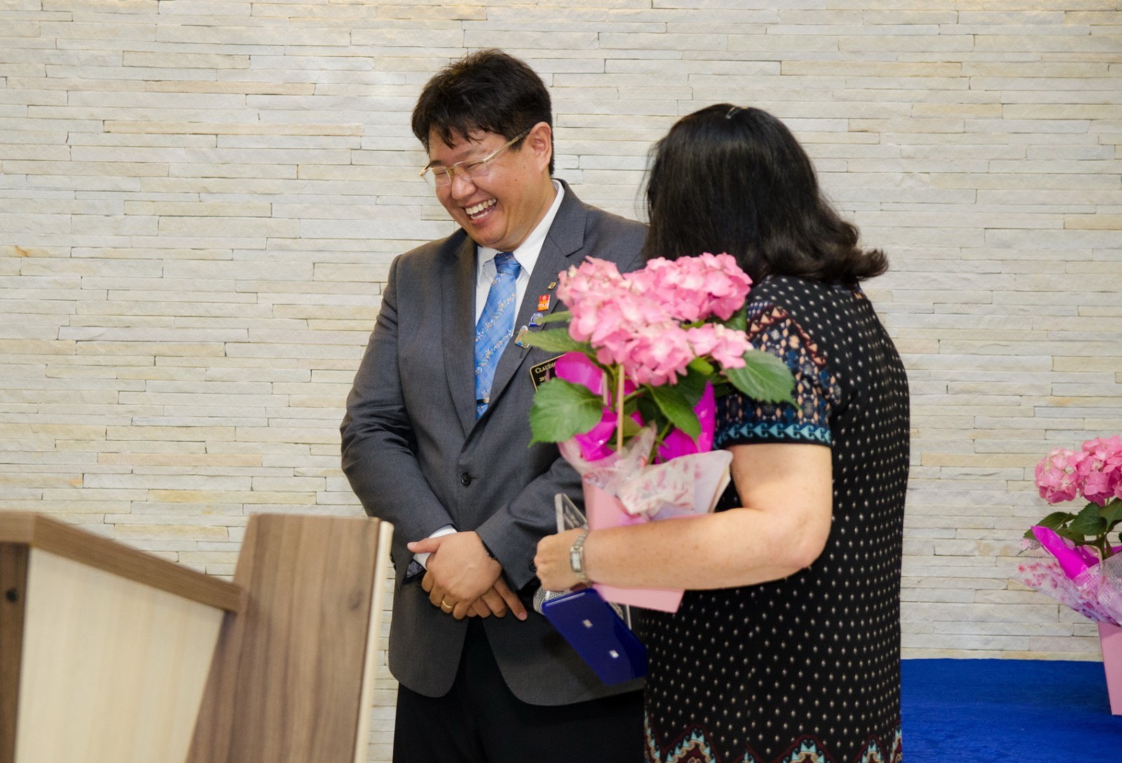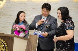 Em seu discurso, Claudio Takata reforçou sobre a continuidade dos trabalhos do Rotary International citando alguns valores sobre companheirismo, comprometimento, integridade, diversidade, liderança, entre outros. Ele parabenizou o projeto visitado e agradeceu à tarde maravilhosa. Tenho orgulho de ser rotariano e realizar parceria com uma entidade beneficente sólida.