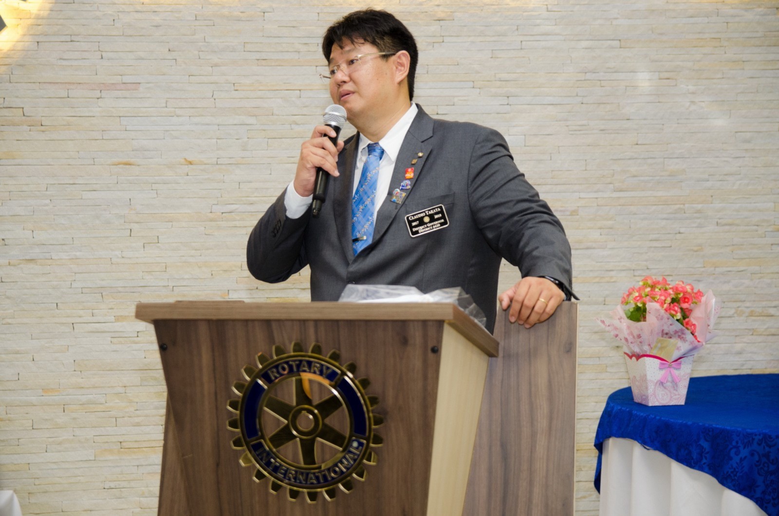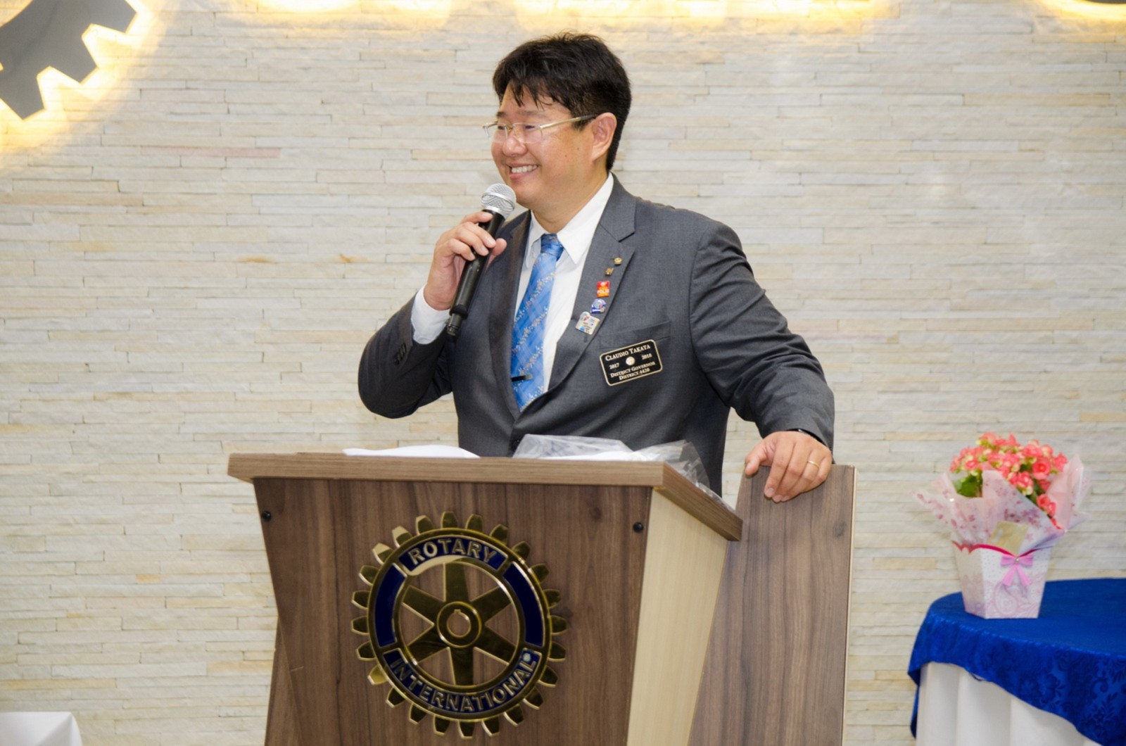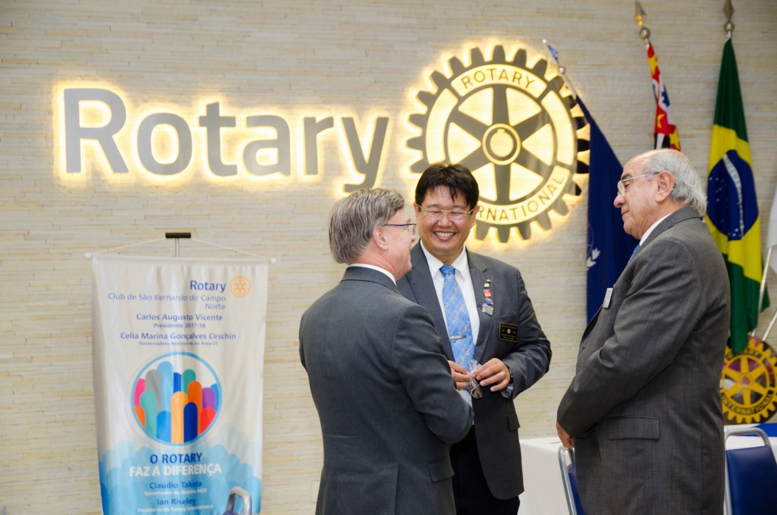 Após foi realizada à assembleia com integrantes da equipe rotária. Takata reforçou que para o novo ano rotário 2017-2018 foram definidas como prioridades as seguintes estratégias organizacionais: fortalecimento e apoio aos clubes; maior enfoque à expansão dos serviços humanitários como o reforço do combate a poliomielite, o plantio de árvores, aumento da projeção e imagem pública da organização, entre outros.