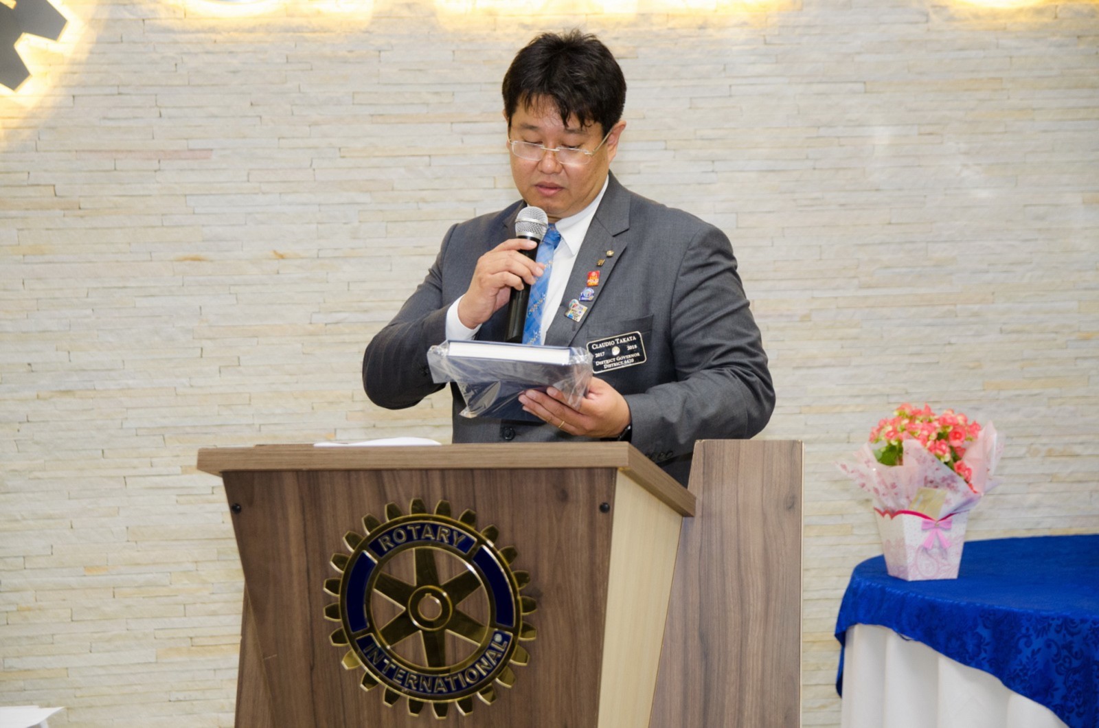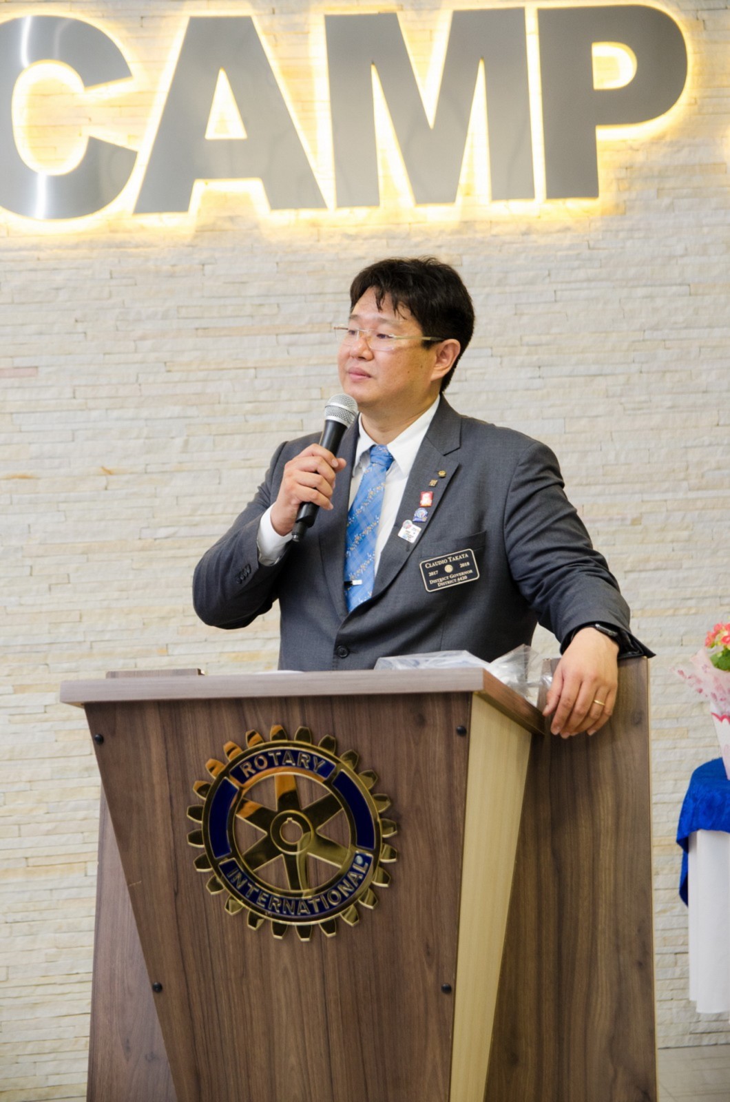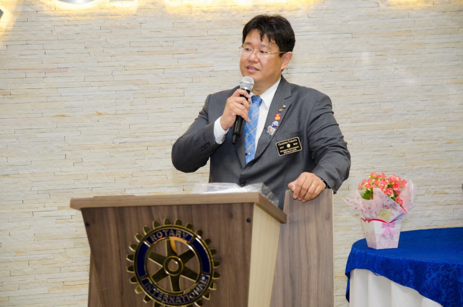 Após foi realizada à assembleia com integrantes da equipe rotária. Takata reforçou que para o novo ano rotário 2017-2018 foram definidas como prioridades as seguintes estratégias organizacionais: fortalecimento e apoio aos clubes; maior enfoque à expansão dos serviços humanitários como o reforço do combate a poliomielite, o plantio de árvores, aumento da projeção e imagem pública da organização, entre outros.