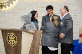Ana Maria Fachini Mônaco foi à homenageada na área educação. A professora recebeu das mãos do governador do Distrito 4420, uma placa em forma de reconhecimento e agradecimento por ser a educadora do ano.
