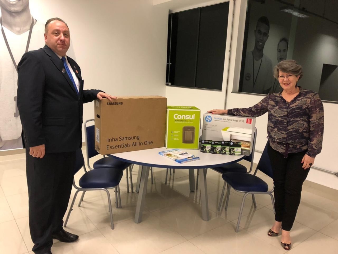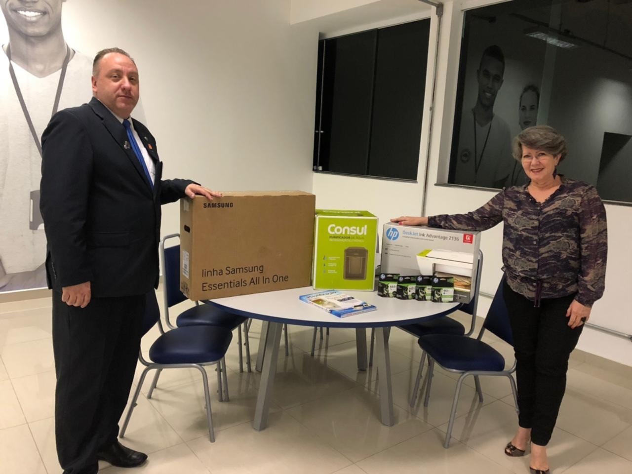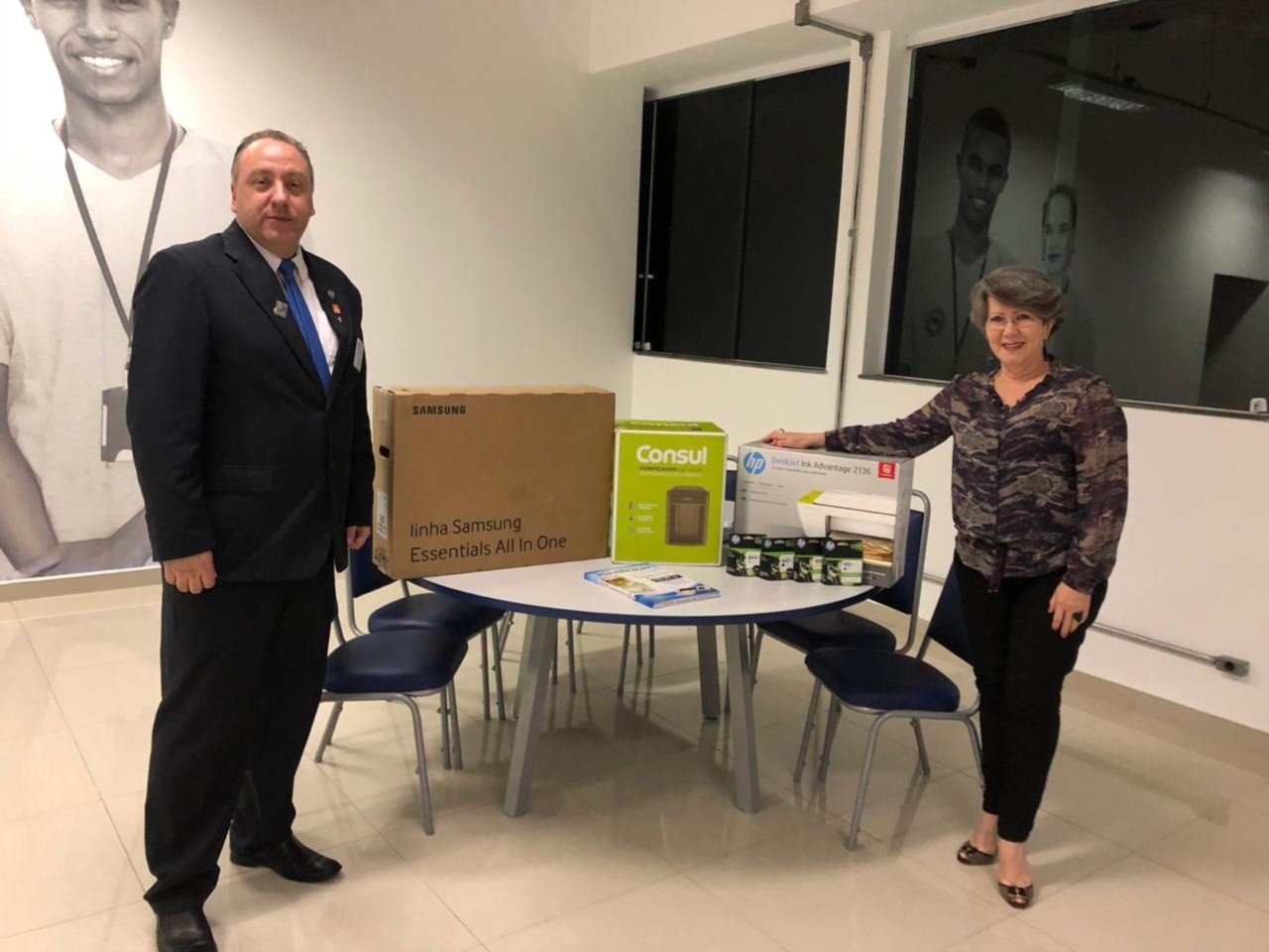 O Presidente Inspirador Odirlei J. Quintini Jr. entregou um computador, uma impressora, um purificador de água e plásticos para plastificação de documentos para a companheira Rosi Juncker, presidente do Instituto Ricardo Juncker, equipamentos adquiridos com subsídio distrital.