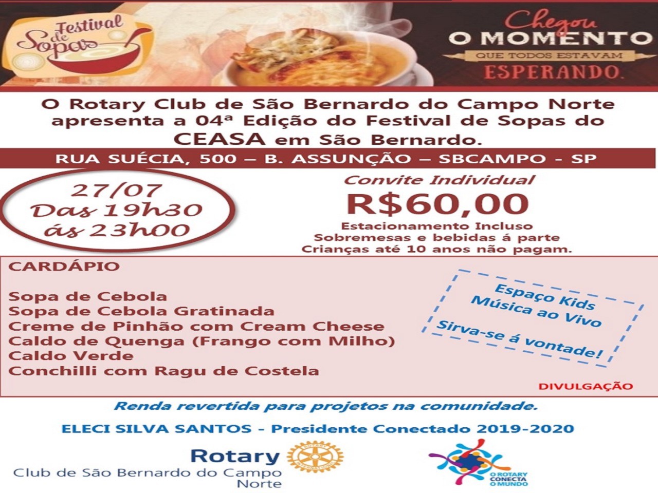 O Rotary Club de São Bernardo do Campo-Norte apresenta o 4º Festival de Sopas do CEASA no ABC !!!